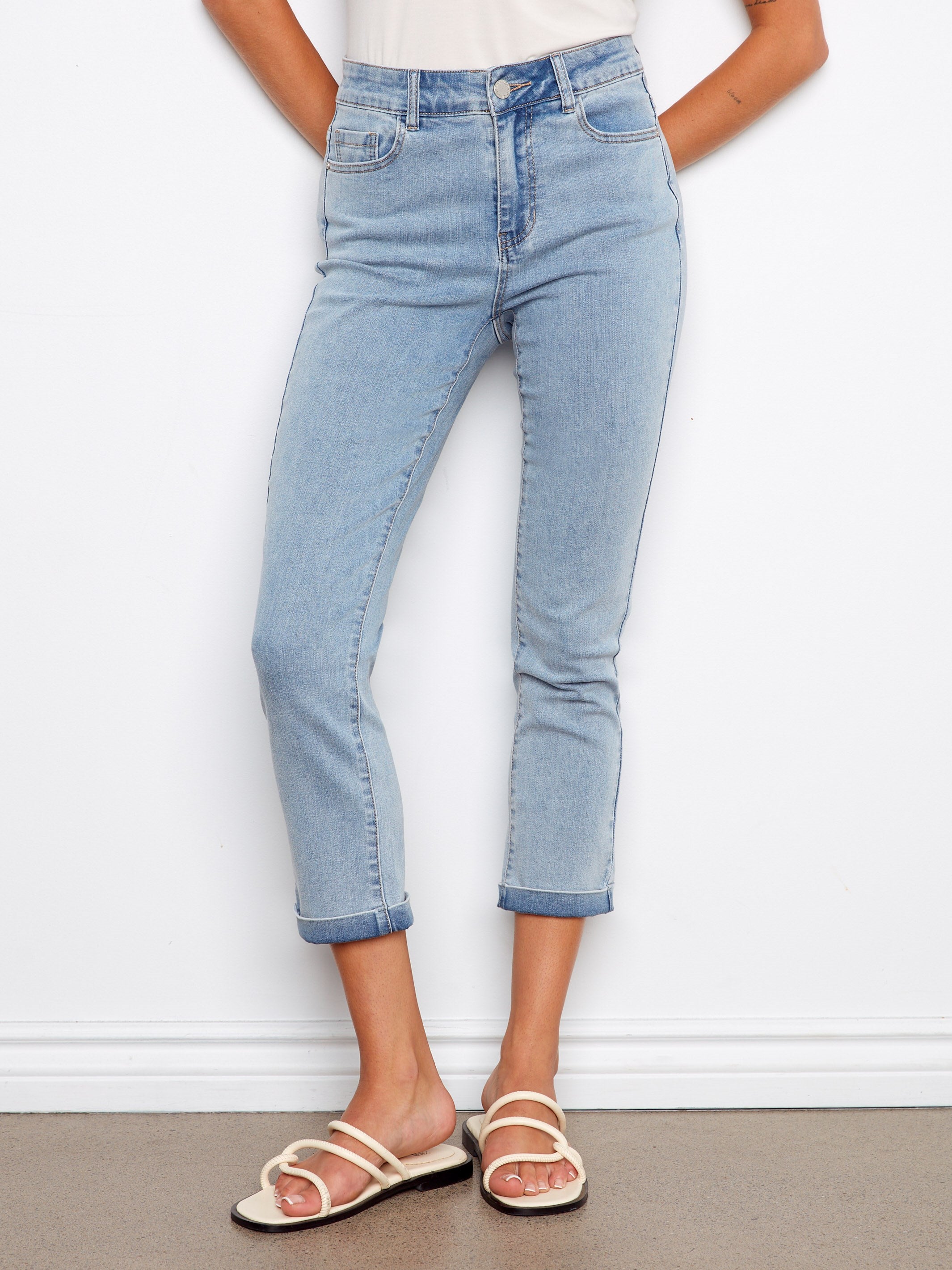 Meet your new go-to jeans for spring and summer. Our Cuffed Cropped Slim Leg Jeans offer a fresh update to timeless denim, crafted in a light blue wash with a flattering slim fit. Designed with a regular rise and a modern cuffed hem, they deliver a clean, contemporary finish. Effortlessly versatile, they pair seamlessly with any top for a polished everyday look you’ll reach for again and again.